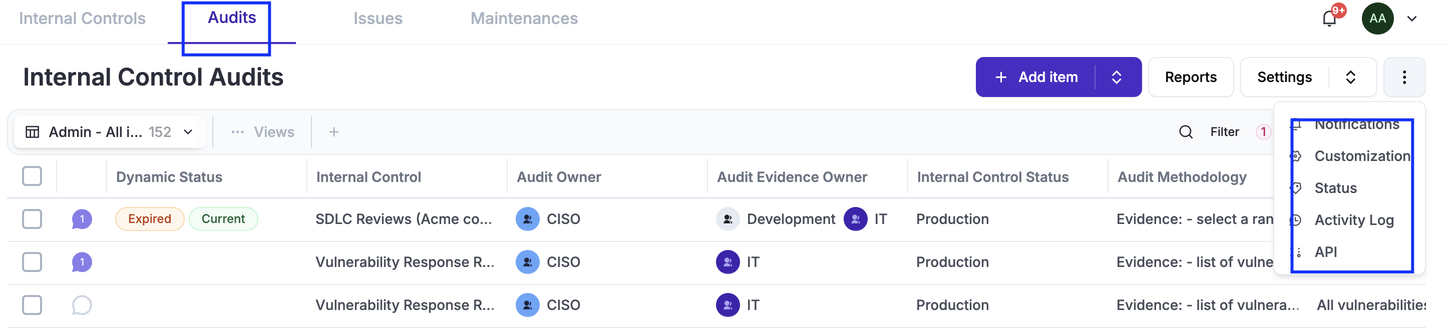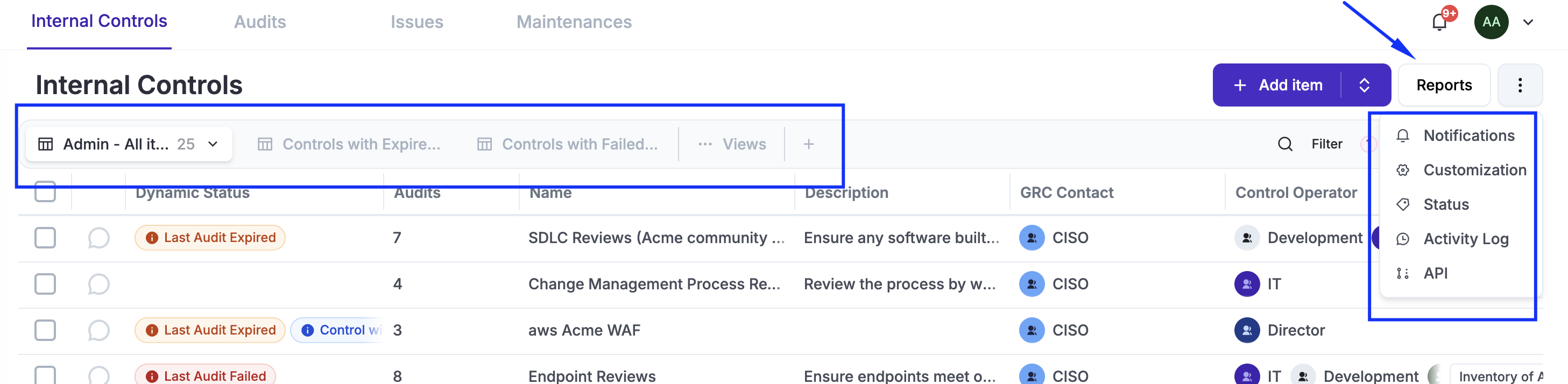 If an associated control fails a test, all risks linked to that internal control will inherit the issue, regardless of when it occurs. This allows you to see clearly from the "Problem" perspective (the risk) whether the treatment is actually effective. The same logic applies to policy reviews, exception reviews, and project deadlines.