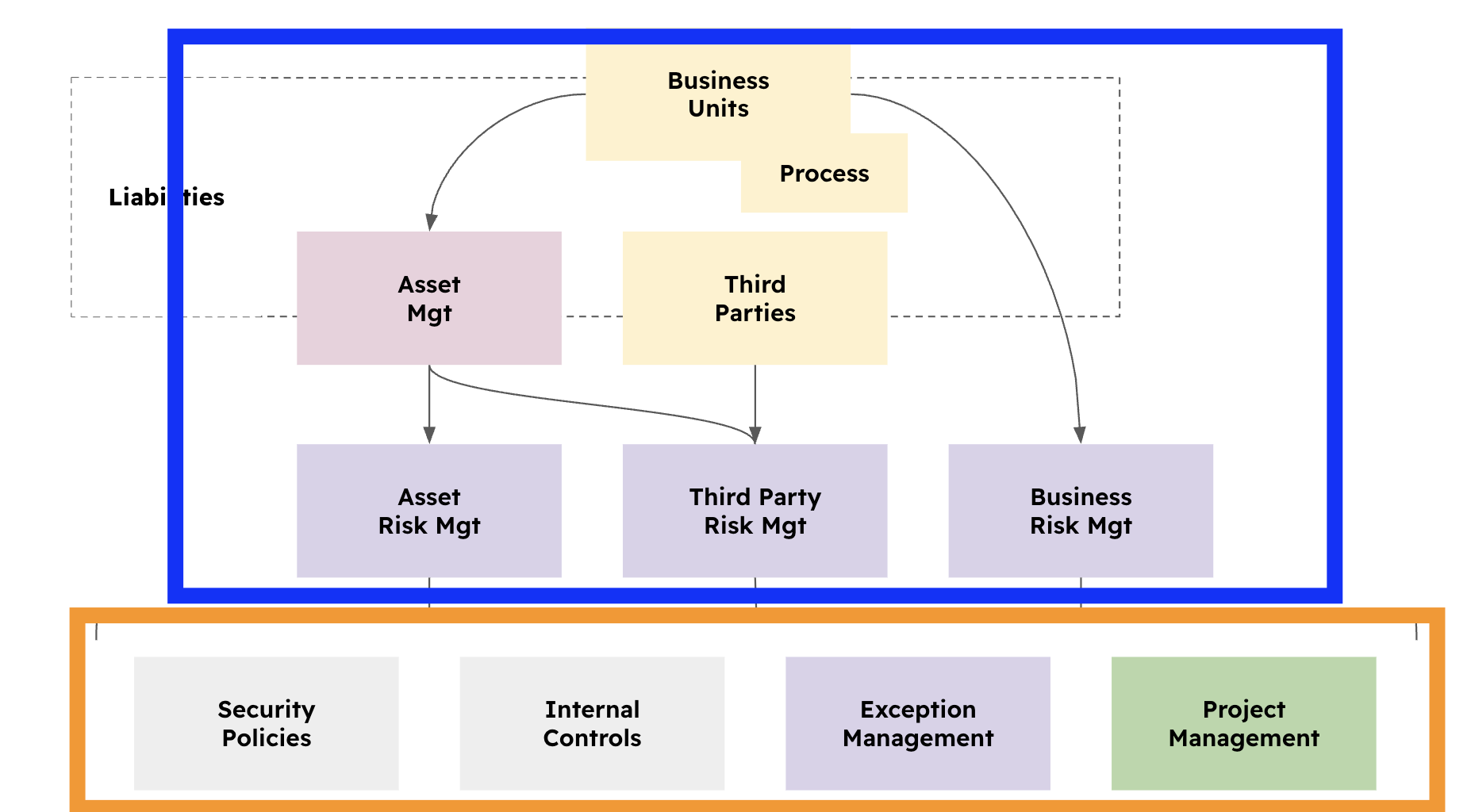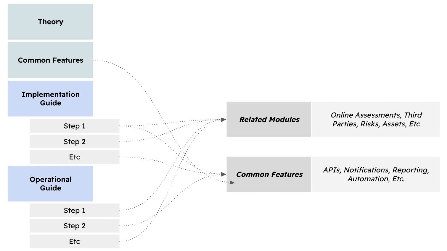 Related Modules: These are supporting modules that provide the "solutions" to your risks. To fully implement Risk Management, you will interact with Policies, Internal Controls, Exceptions, and Projects.