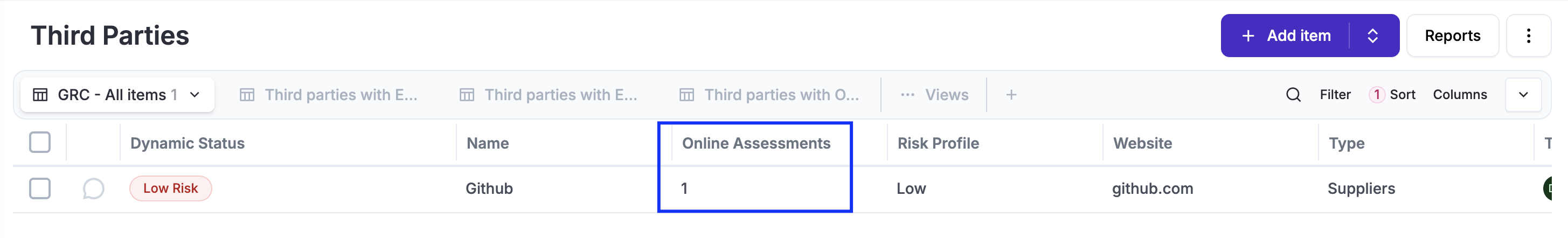 Supplier Assessments: Requires association with the Organization / Third Party module.