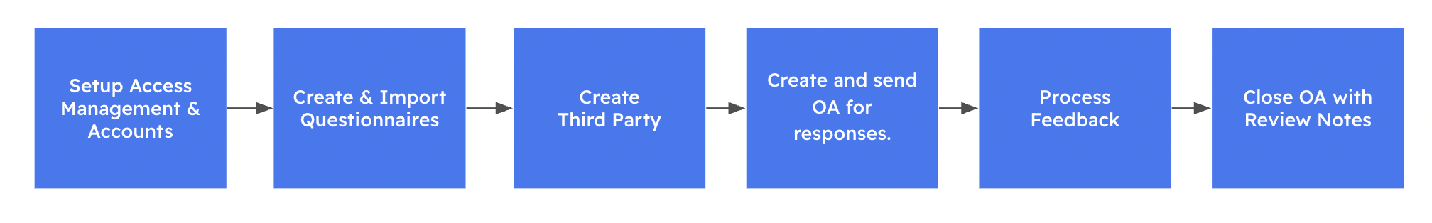 As discussed OAs can use for an infinite number of scenarios, in this implemnetation we wil focus on Supplier Assessments which as discussed seem to be the most poppular one. The implementation steps are shown on the diagram below: