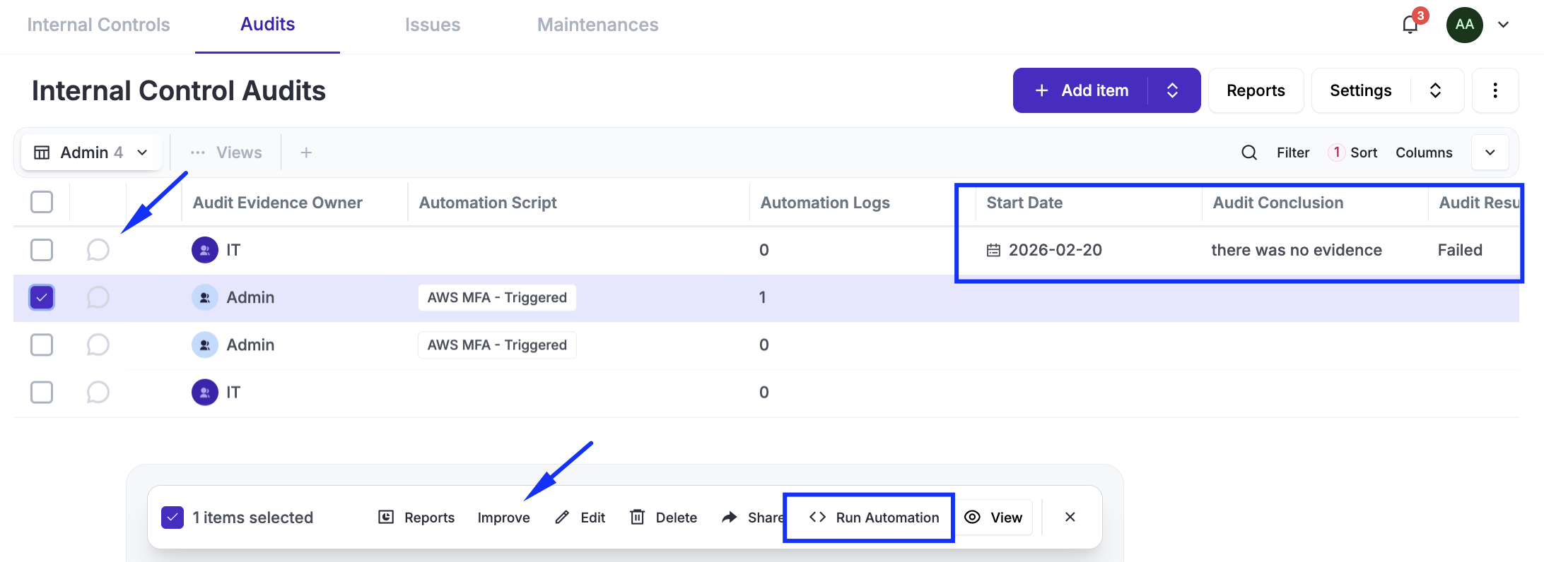 If you are using automation, the script will automatically execute at midnight on the day of the planned audit, or you can run it manually at any time by clicking "Run Automation."
