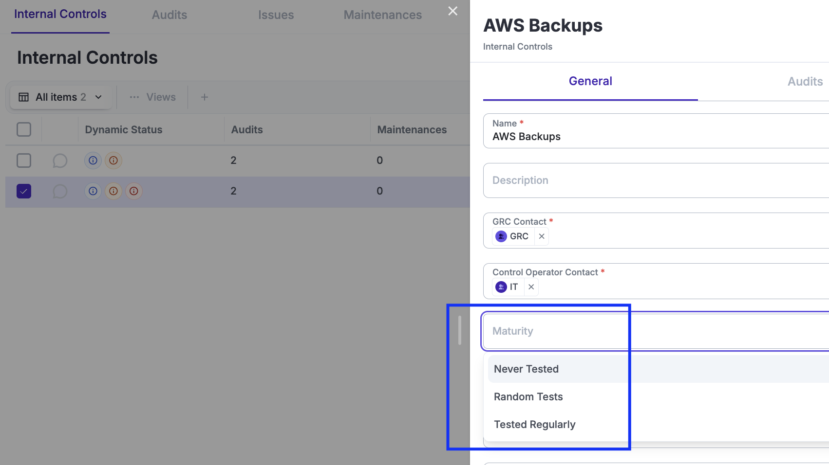 The "Sandbox" Control: Create one dummy Internal Control—complete with Audits and Maintenances—until you are fully familiar with the User Interface.