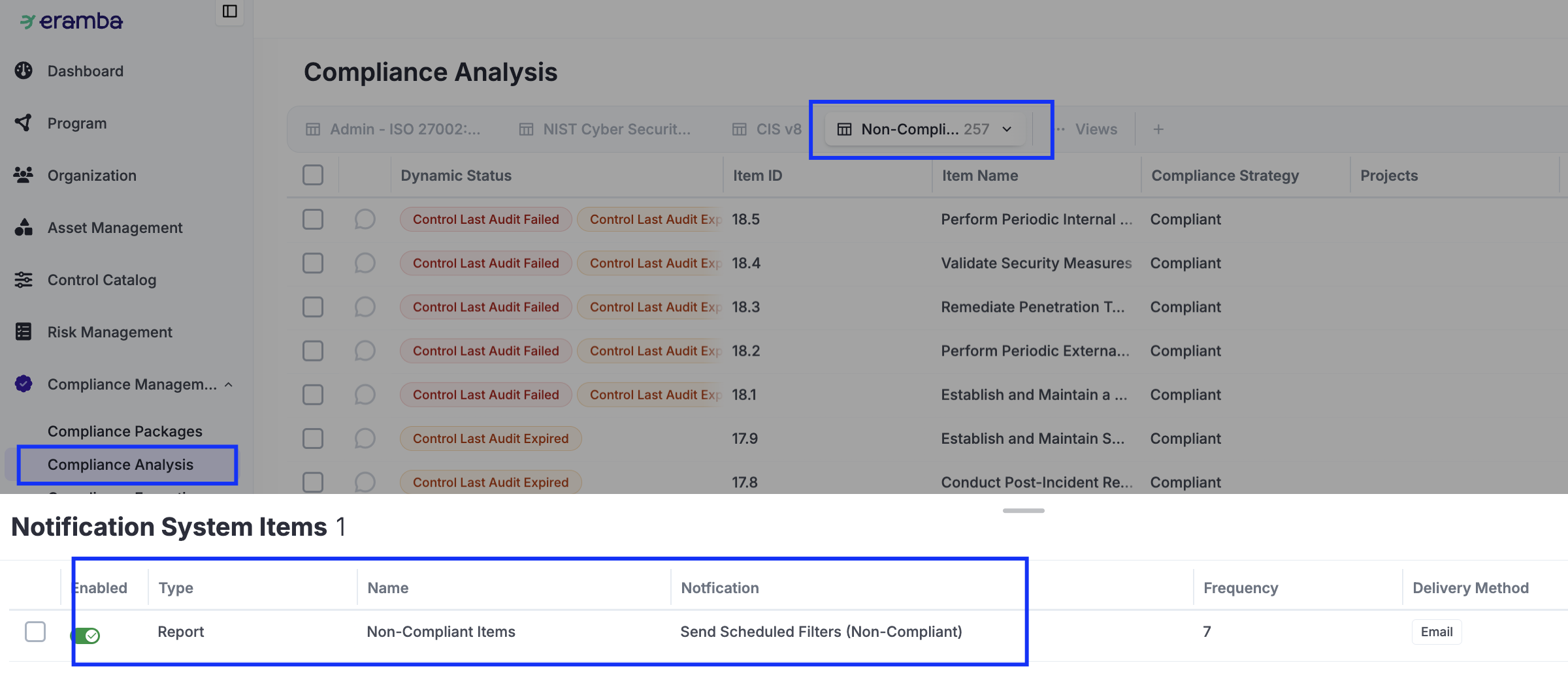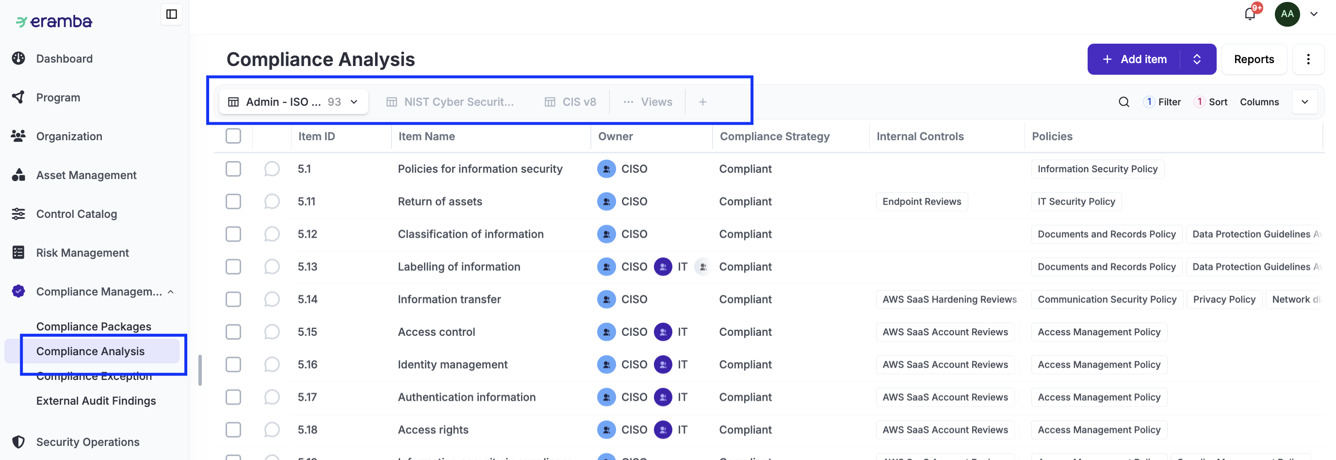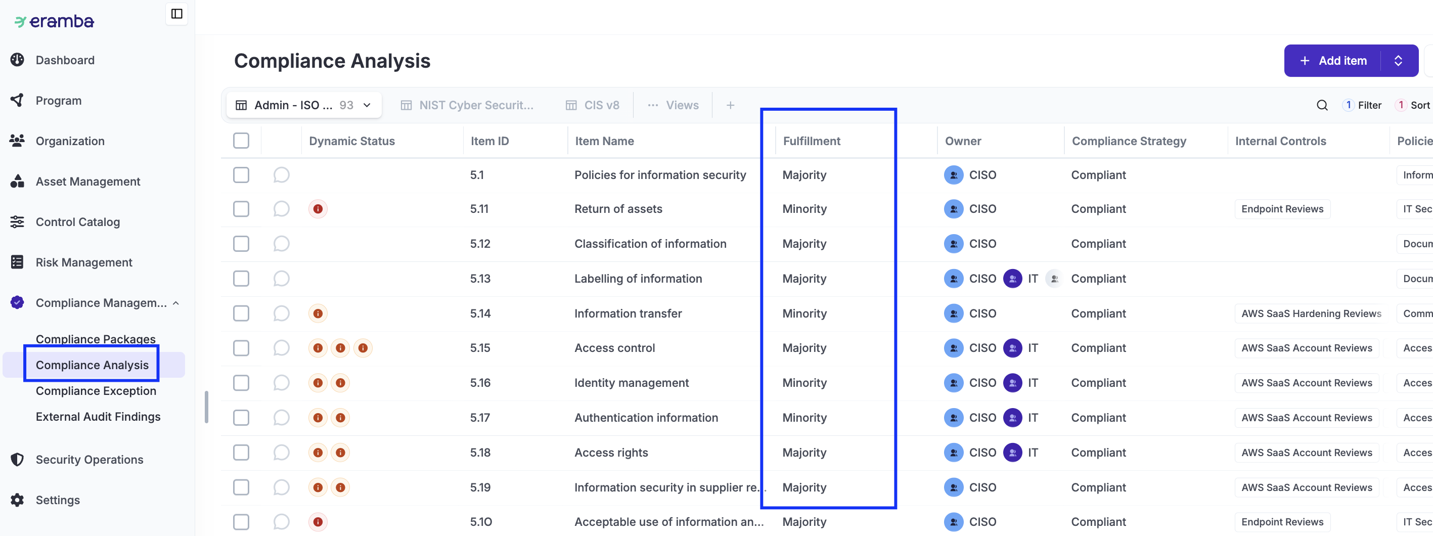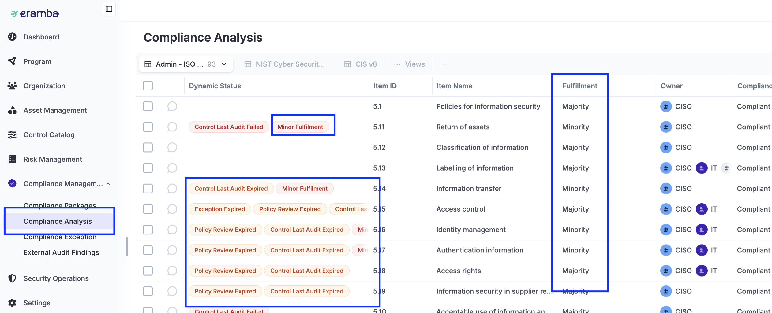 There are multiple operational tasks regarding compliance management in eramba. These are all aimed at keeping data updated and accurate and, most importantly, ensuring everyone is on board.