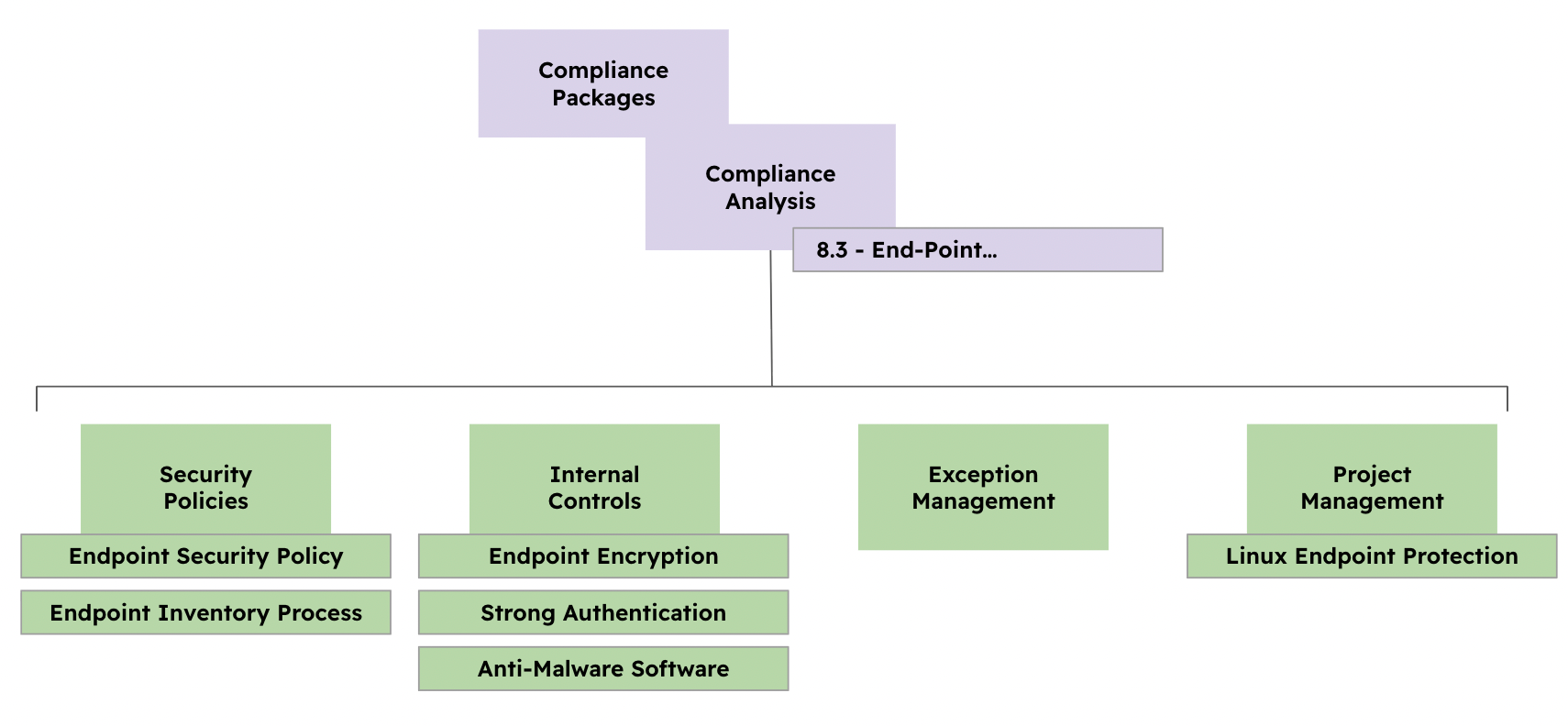 Let’s use an example so you can better understand this process, imagine you need to be compliant with ISO 27002 requirement 8.1 “User Endpoint Management”. A company (we will see the answer is always different later) could associate the following solutions: